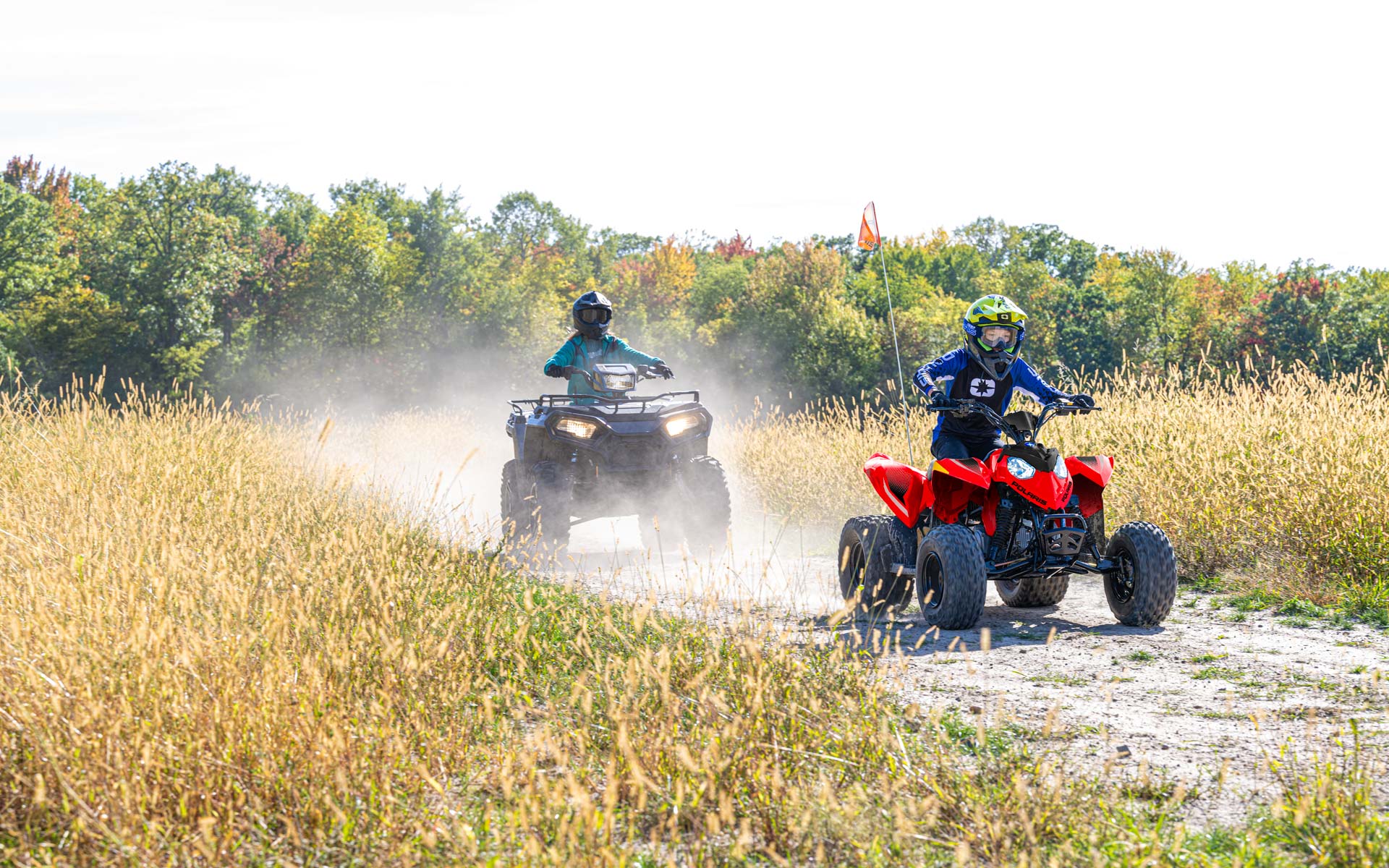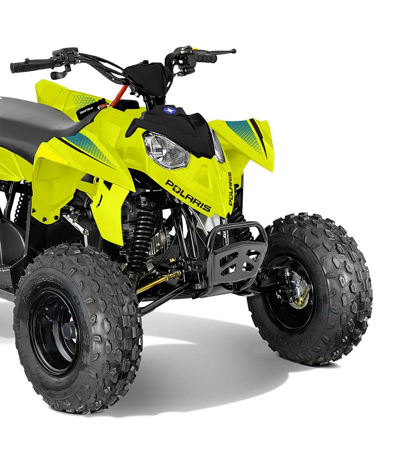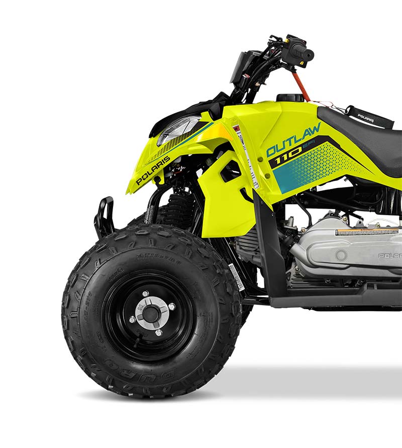 Con un motor EFI de 110 cc y accesorios para permitir que los conductores más jóvenes crezcan con su ATV. Hecho para niños mayores de 10 años.