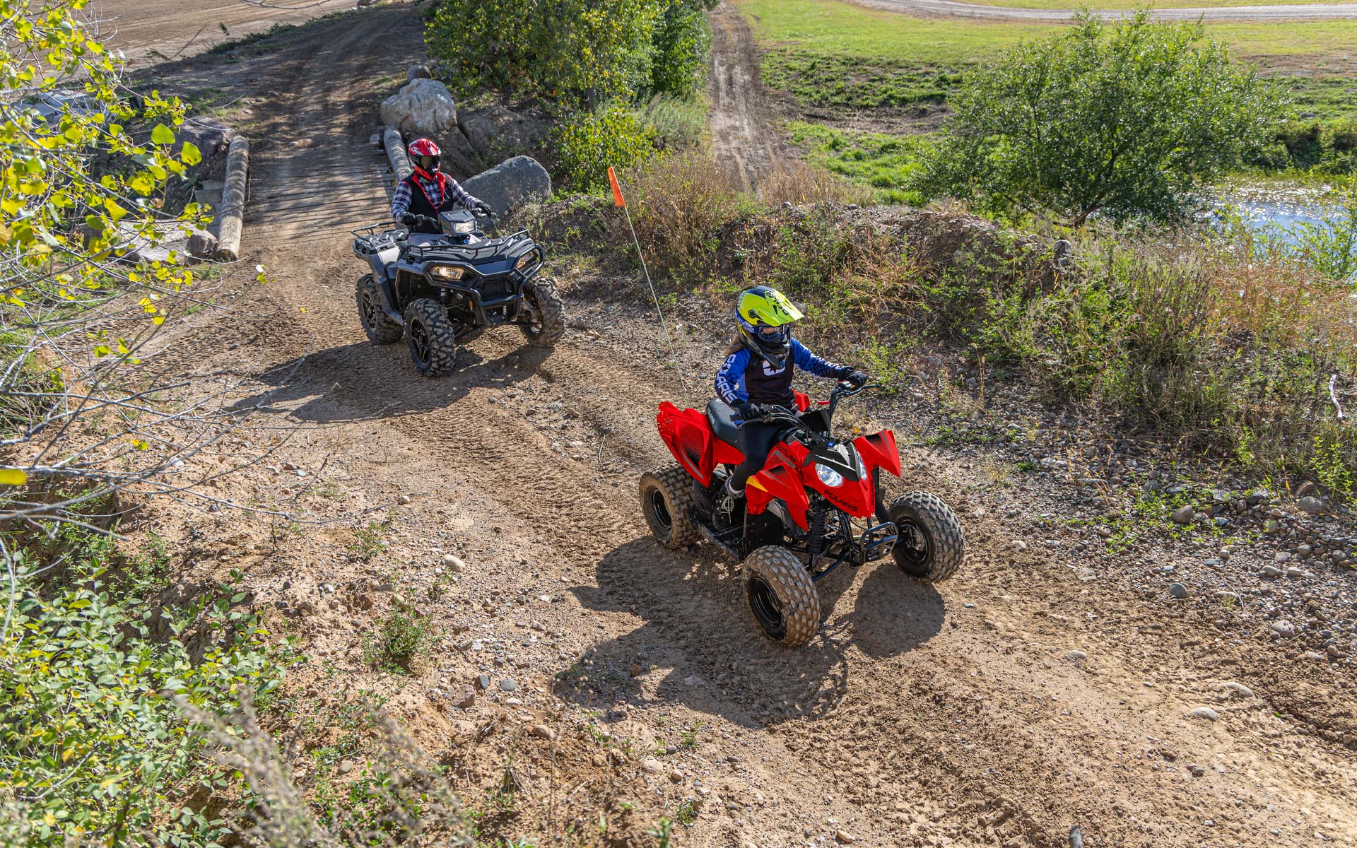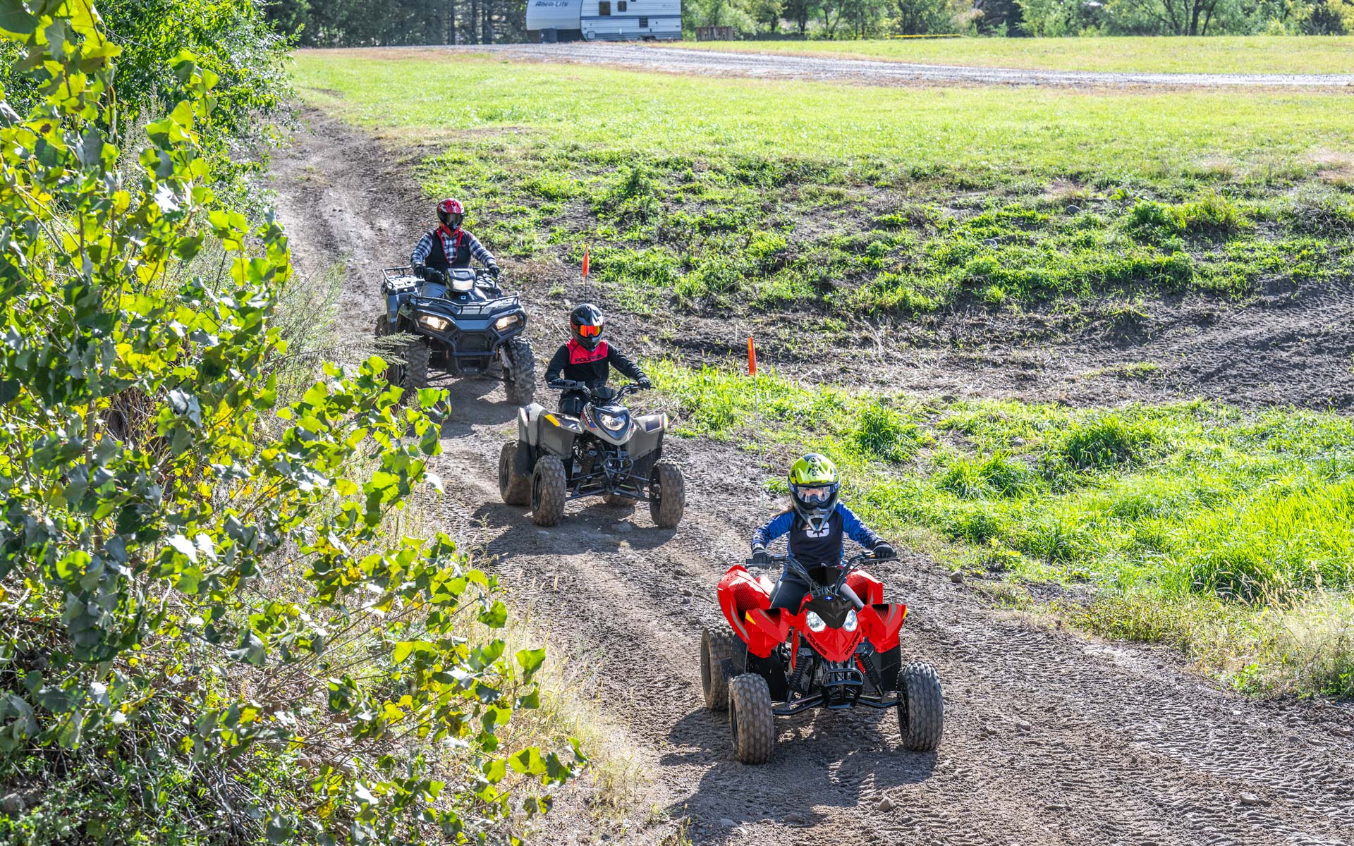 Los niños pueden comenzar nuevas aventuras con confianza con un vehículo cómodo y un manejo sin esfuerzo en una Outlaw 110.